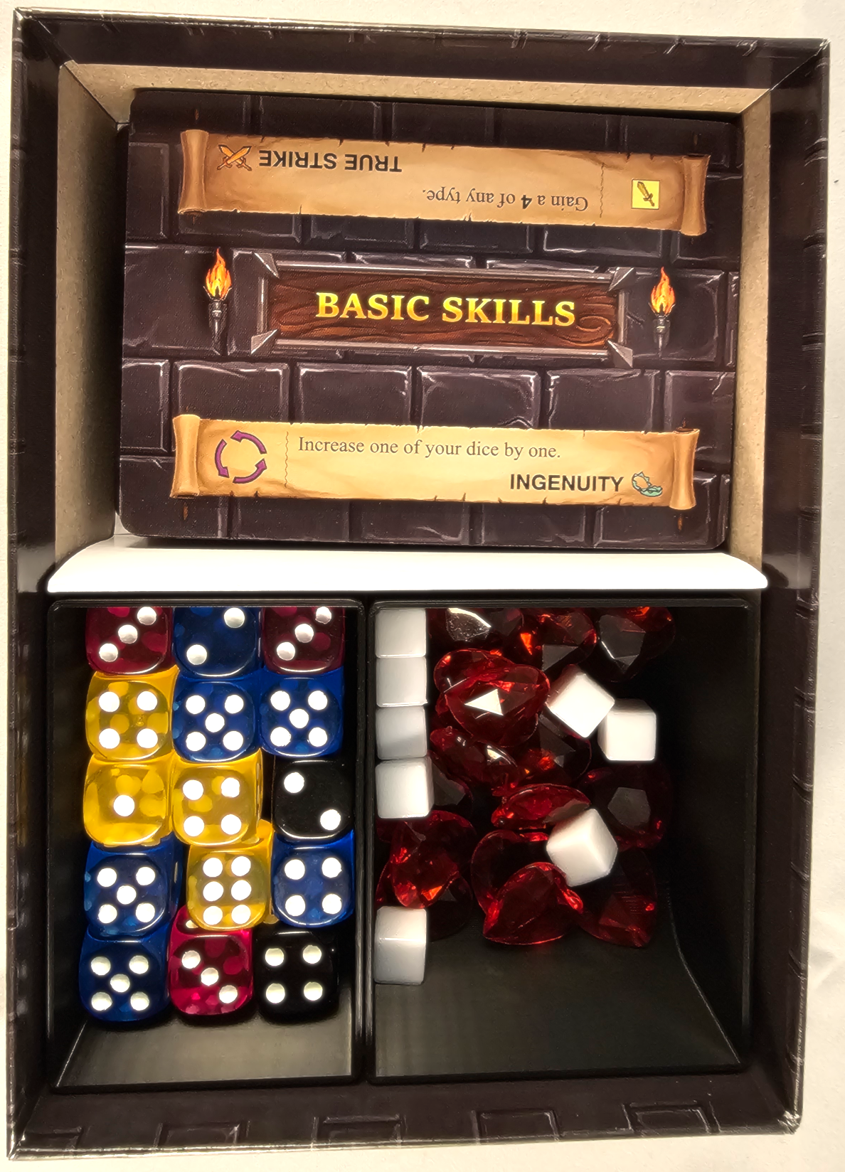 Get ready to conquer the dungeon without the hassle of searching for your components! With the One Deck Dungeon insert, your supplies are neatly organized for your next adventure. No more rummaging through piles - just grab your gear and go! (Cue epic adventure music)