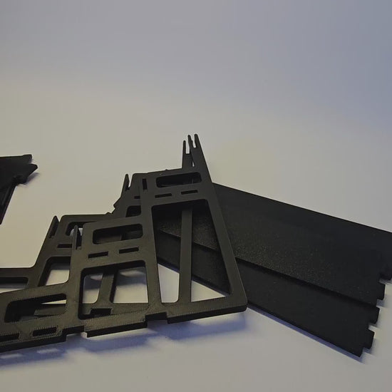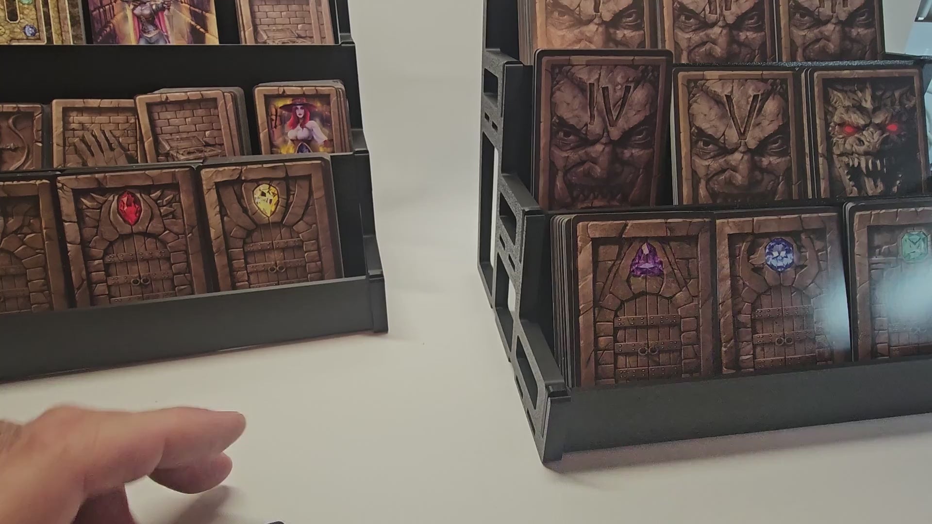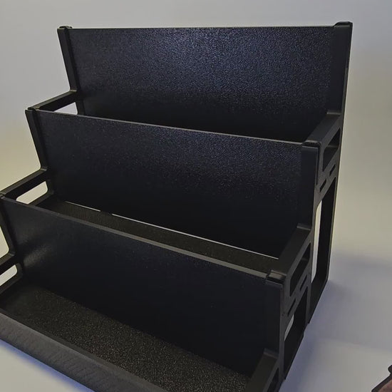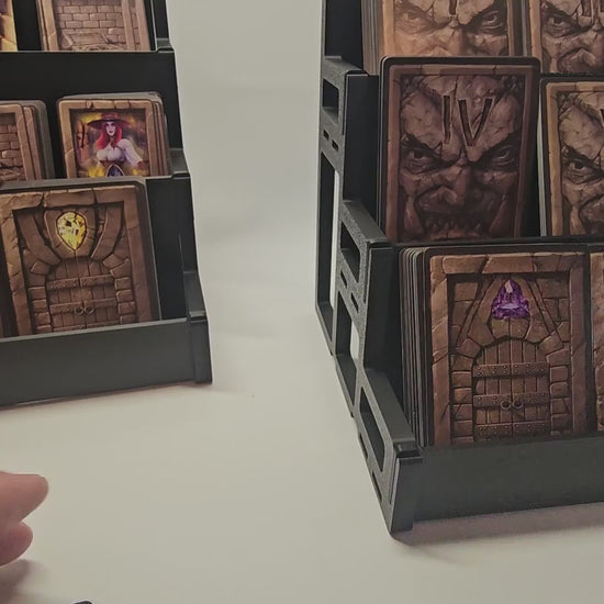 Designed for serious gamers, this modular card pamphlet holder features three floors with three card stacks per level. Each unit disassembles flat for easy storage and can be combined with additional holders to create a beautiful, organized card display for your gaming table.